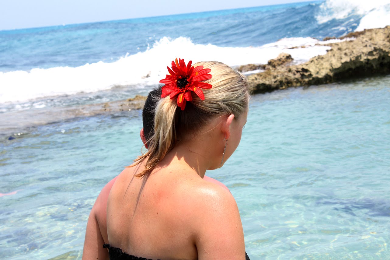 From there we went to the farthest part of Playa Norte…The Avalon. This is another all-inclusive hotel. It is on its own separate island connected by a long wooden bridge. I say long, but please don’t picture the Brooklyn Bridge or anything…It was only about 50 yards long…but when you are walking over crystal clear waters that you can see all sorts of tropical fish swimming in and you keep stopping to take it all in, THEN it seems like a longer bridge.